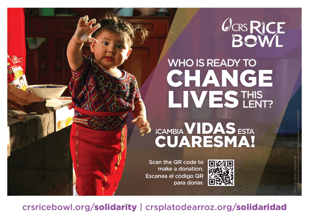 To learn more or give online, scan the QR code, or visit https://www.crsricebowl.org/.